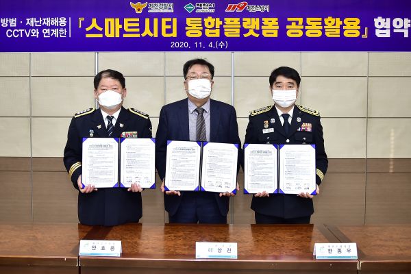 [충청뉴스큐] 제천시와 제천경찰서 제천소방서 3개 기관은 지난 4일‘스마트시티 통합플랫폼 공동 활용’에 따른 업무 협약식을 체결했다.