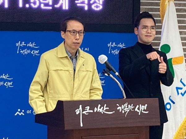 윤찬수 부시장은 “아산시 공직자들은 현 상황을 매우 엄중하게 인식하고 있으며 시민 여러분은 다가오는 주말 코로나19 확산세가 더욱 급증할 우려가 있는 만큼 오늘 오후6시부터 사회적 거리두기를 1.5단계로 격상하는 방역관리 강화 행정명령을 발령한다”고 했다.