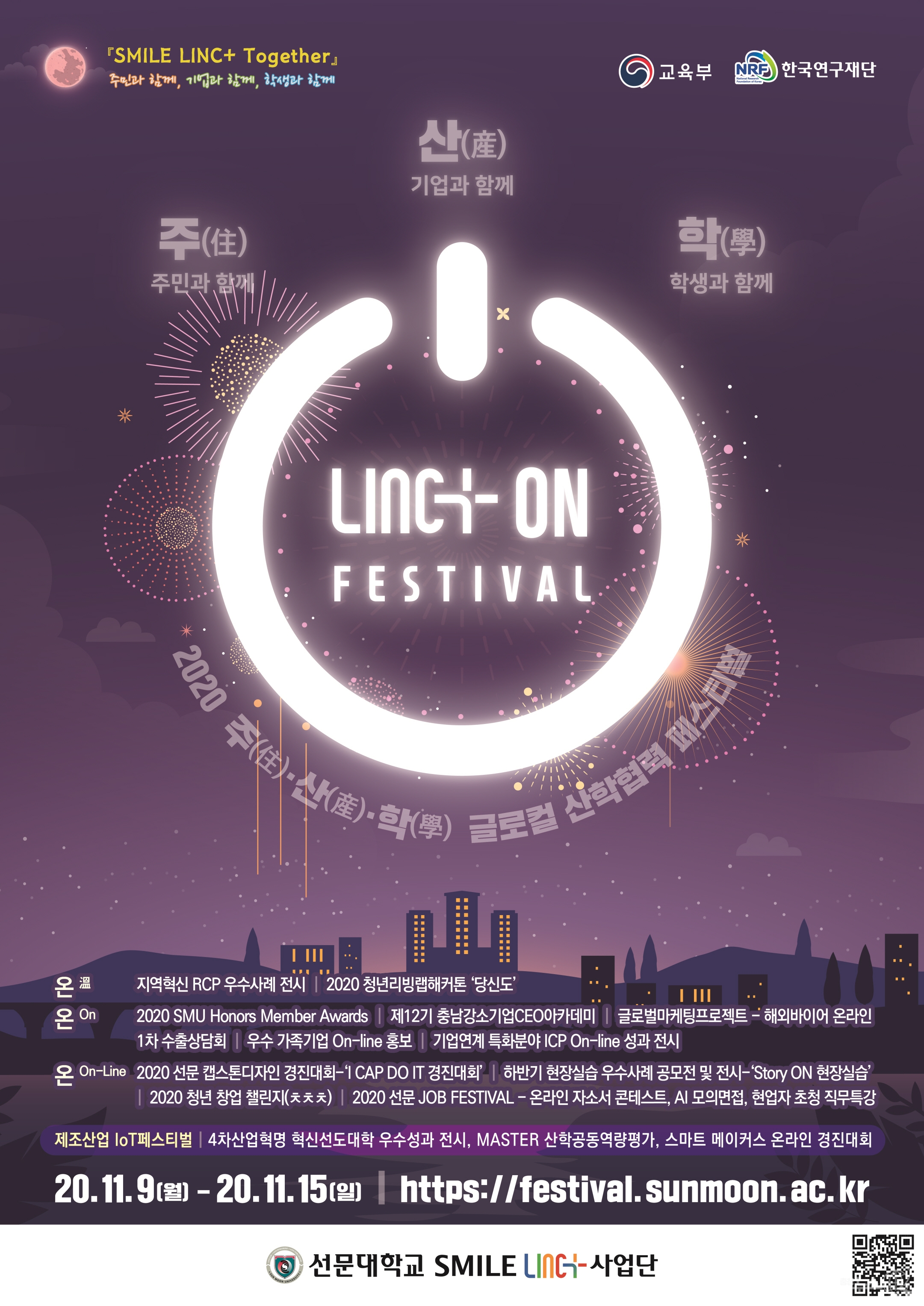 교육부와 한국연구재단 후원으로 진행되는 이번 행사는 ‘LINC+ ON’이라는 주제를 갖고 코로나19 확산 방지를 위해 대부분의 프로그램이 온라인으로 진행된다.