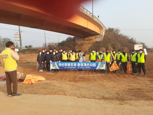 [충청뉴스큐] 아산시가 전국에서 손꼽는 대형 공공수면인 아산호방조제 인근 수변에서 환경정화 활동을 실시했다.