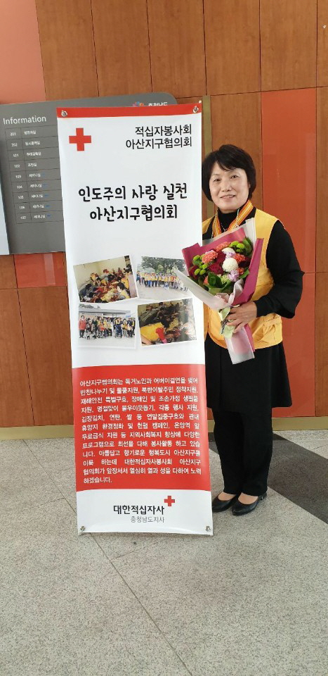 [충청뉴스큐] 대한적십자봉사회 아산지구협의회 회장인 김정희 고문이 지난 12일 대한적십자 연차대회에서 ‘자원봉사유공장 명예대장’의 영예를 안았다.