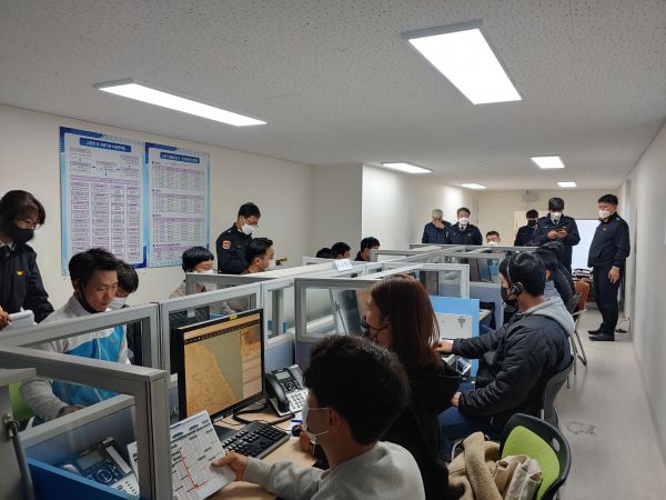 훈련은 119신고접수 비상전환에 따른 상황요원 비상소집 종합상황실 전환 비상접수대에서 신고전화 접수 일선 소방서 출동지령 순으로 진행했다.