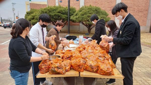 무김치 담그기에는 인근 서야고등학교 학생들이 참가했다.