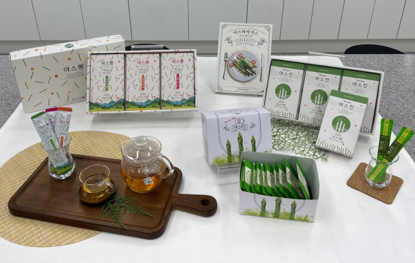 이에 강원도농업기술원 농식품연구소는 지난 2017년부터 아스파라거스 농가 소득증대를 위해 연중 언제든 소비가 가능한 가공제품 개발에 뛰어들었고 침출차 ‘아스티’와 스틱 젤리포 ‘아스봉’, 짜먹는 농축액 ‘아스진’을 개발했다.
