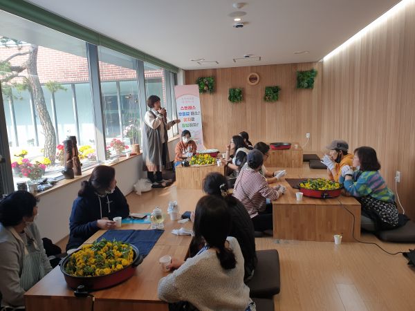 해당 프로그램은 전문강사의 지도아래 주부들의 스트레스 완화를 위한 생활 속 꽃차 만드는 방법과 효능을 알아보고 직접 만든 차를 시음해보는 시간을 가짐으로써 눈으로 보기만 하던 꽃을 차로 만들어 건강도 챙기고 일상생활에 활력을 주며 마음에 여유와 안정을 갖게 한다.