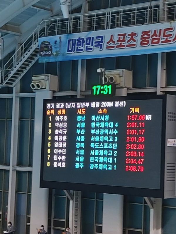 이주호 선수는 2018 국제대회 수영 국가대표 선발대회 배영 200M 종목에서 1분57초67이라는 한국 신기록을 세웠는데, 이번 대회에서는 1분57초06라는 기록을 세워 본인의 신기록을 0.61초나 줄였다.