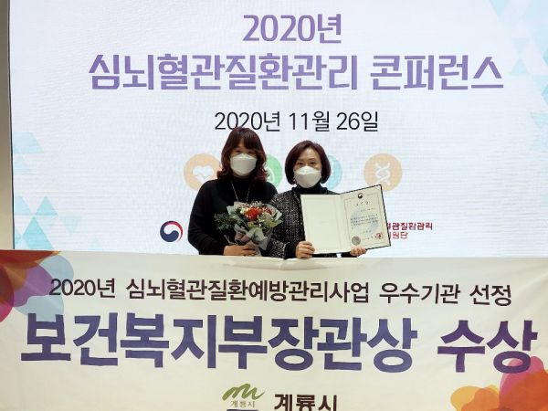 [충청뉴스큐] 계룡시는 지난 26일 서울대학교 암병원에서 열린 ‘2020년 심뇌혈관질환관리 콘퍼런스’에서 심뇌혈관질환 예방관리 우수기관으로 선정돼 보건복지부장관상을 수상 했다고 밝혔다.