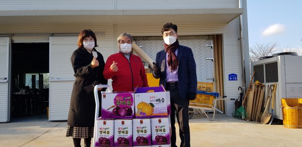 [충청뉴스큐] 베두실 영농조합법인이 지난달 30일 온양4동 취약계층에 전달해달라며 양파즙 20상자를 온양4동 행복키움추진단에 전달했다.
