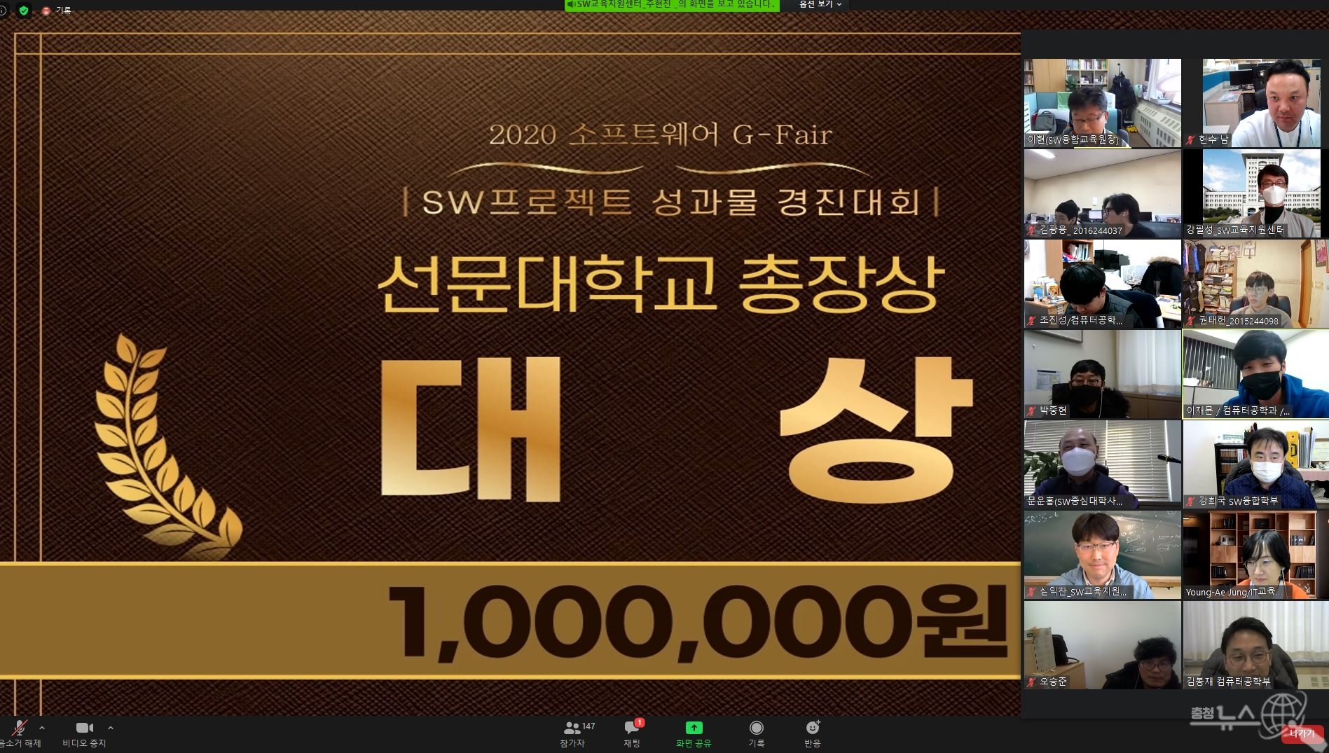 선문대학교 SW중심대학사업단(단장 이현)은 2일 지역 주민과 재학생 대상으로 ‘2020 소프트웨어 G-Fair’를 개최했다“고 3일 밝혔다.