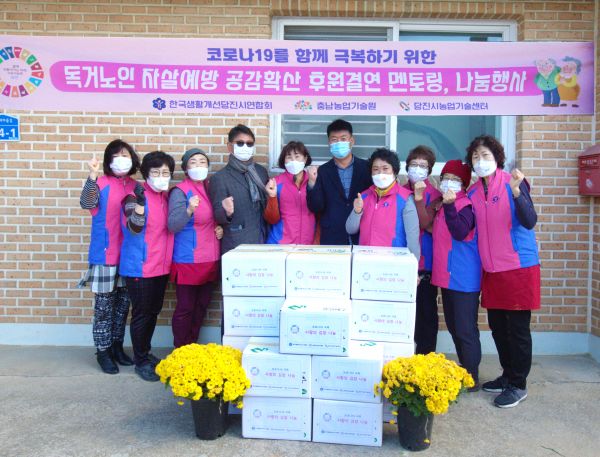 [충청뉴스큐] 한국생활개선당진시연합회는 독거노인 자살예방 후원결연 멘토들과 함께 지난 3일 코로나19로 인해 외로움과 어려움을 겪고 있는 독거노인들에게 김장김치 나눔을 실시했다.