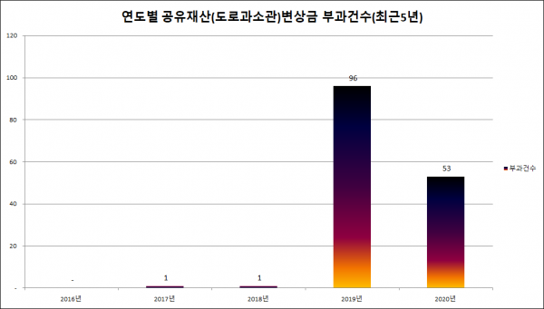 또한 현장조사를 통한 조사가 이루어지는 만큼 각 1건에 그쳤던 2017·2018년과는 달리 2019년 96건 1047만2000원, 2020년 53건 4547만원, 2년간 총149건 5594만1000원의 변상금을 부과해 재산의 활용가치를 높이고 있다.