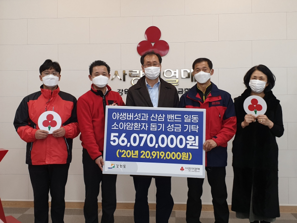 [충청뉴스큐] 네이버밴드 야생버섯과 산삼 동호회에서는 12월 8일 연말을 앞두고 도내 소아암 환아 5명에게 20,919천원을 기탁했다.