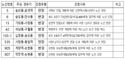 이와 함께 6번, 42번, 905번, 907번 등 4개 노선은 주변지역 개발 등의 사유로 시민 편의를 위해 노선이 변경된다.