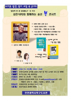 [충청뉴스큐] 인천광역시북구도서관은‘독서와 글쓰기로 나를 찾는 방법, 새로움을 더하는 미래도서관 이야기’라는 주제로 김민식 MBC 프로듀서를 초청하여 북콘서트를 개최한다고 밝혔다.