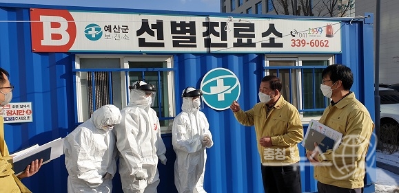 황선봉 예산군수가 2일 코로나19 확산 방지를 위해 연일 노력하고 있는 선별진료소 방문을 시작으로 2021년 새해 첫 공식 행보에 나섰다.