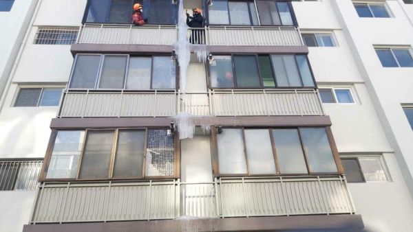 고층 고드름은 베란다, 난간 등 물기가 있는 곳은 마른걸레 등으로 습기를 사전제거하고 고드름 발견 시 에는 낙빙으로 인한 안전사고가 발생할 수 있으니 119에 신고하는 것이 가장 안전하다.