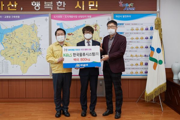 [충청뉴스큐] 한국물류시스템가 지난 7일 아산시에 방문해 취약계층 지원을 위해 백미 10kg 80포를 후원했다.