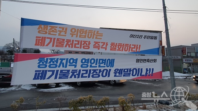 사업신청이 주민들에게 알려지자 영인면 이장단 등 주요기관단체가 한 목소리로 매립장 조성을 강력히 반대하며 반대 현수막을 게시하는 등 행동에 나섰다.