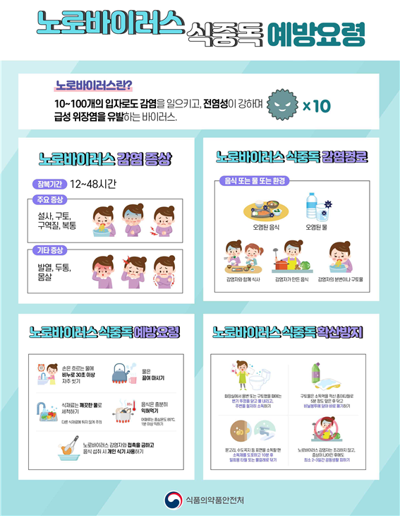 식중독은 흔히 기온이 높은 여름에 주로 발생하는 것으로 알려져 있지만, 노로바이러스에 의한 식중독은 날씨가 추워지는 11월부터 이듬해 봄까지 집중적으로 발생하고 있어 주의가 필요하다.