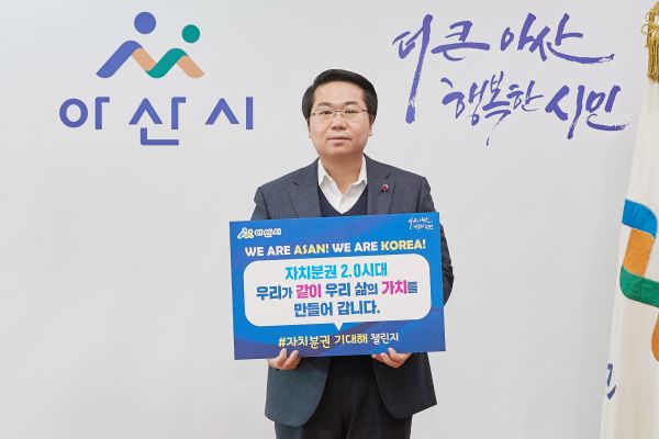[충청뉴스큐] 오세현 아산시장이 지난 15일 자치분권 2.0 시대의 개막을 응원하는 ‘자치분권 기대해’ 챌린지에 동참했다.