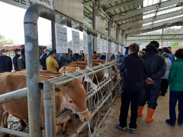 군에 따르면 지난 2009년부터 2020년까지 가축경매시장의 총 거래두수는 4만1315두, 거래액은 1072억원으로 입찰가 대비 낙찰가 총수익은 196억원에 달하고 있다.