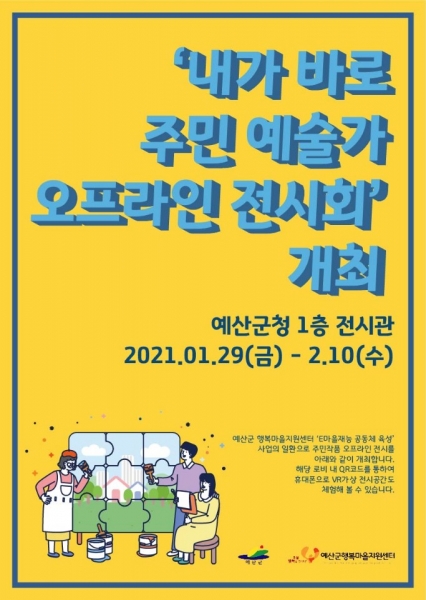 ‘내가 바로 주민 예술가 오프라인 전시회’는 예산군행복마을지원센터에서 ‘E마을 재능 공동체 발굴 및 육성사업’의 일환으로 마을 주민들의 작품을 모집한 뒤 VR전시공간을 조성해 ‘비대면 전시회’를 계획한 사업이다.