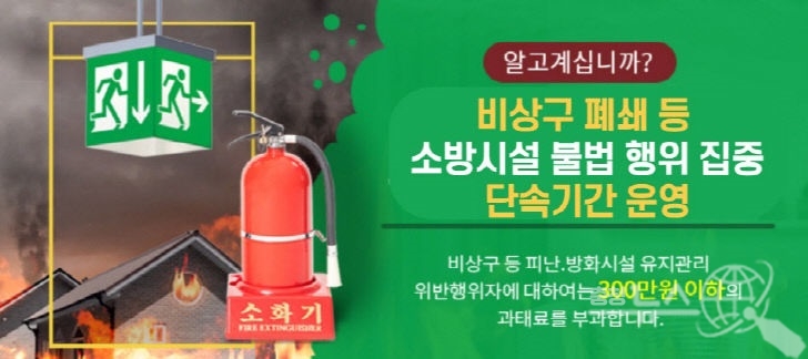 주요 내용으로는 ▲ 소화펌프를 고장 난 상태로 방치하는 행위 ▲ 소방시설 비상전원 설비 차단 등 행위 ▲ 소방시설 폐쇄·차단 등 행위 ▲ 방화문 및 복도, 계단, 출입구를 폐쇄·훼손 등이 있다.