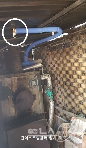예산소방서(서장 김오식)가 지난 26일 겨울철 화목보일러 화재를 초기에 효과적으로 진압할 수 있는 자동소화장치(간이스프링클러)를 설치했다고“ 밝혔다.