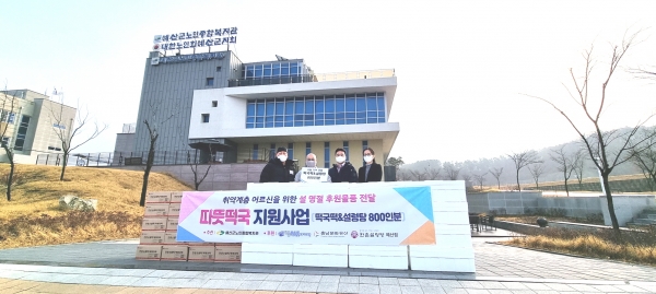 [충청뉴스큐] 충남문화유산과 예산군 이음구강악안면외과치과의원은 1일 설 명절을 맞아 예산군내 취약계층 어르신들에게 떡국 떡과 설렁탕 800인분을 예산군노인종합복지관에게 전달했다.