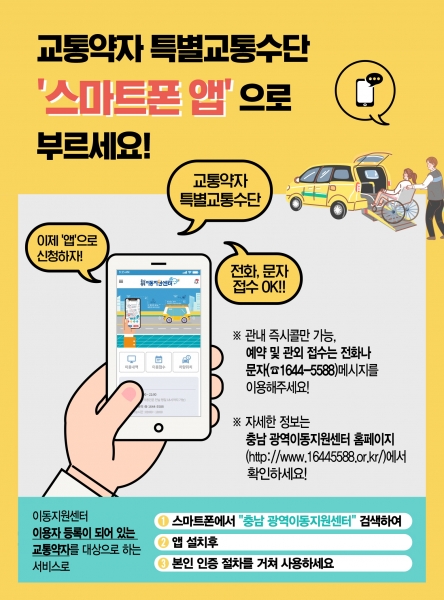 시 관계자는 “스마트폰 배차 앱 운영이 특별교통수단 이용 편의 증진에 도움이 되길 바란다”고 말했다.