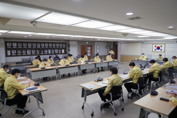 [충청뉴스큐] 아산시는 2일 부서장급 이상 간부들이 참석한 가운데 2월 국소별 월간업무계획 및 코로나19 비상경제 대책회의를 개최했다.