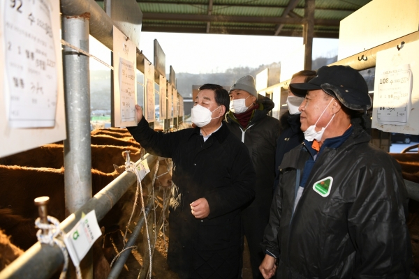 황 군수는 이날 코로나19로 힘겨운 상황 속에서도 가축시장을 운영하는 축협 관계자와 경매에 참석한 축산 농가를 격려했다.