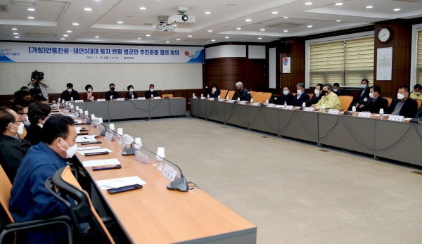 지난 22일 군청 중회의실에서 가세로 태안군수를 비롯한 군 관계자, 실무추진협의회·이장단협의회·주민자치연합회·새마을단체·어촌계협의회 관계자 등이 모인 가운데 ‘안흥진성·태안3대대 토지반환 범군민 추진운동 협의회의’가 열렸다.