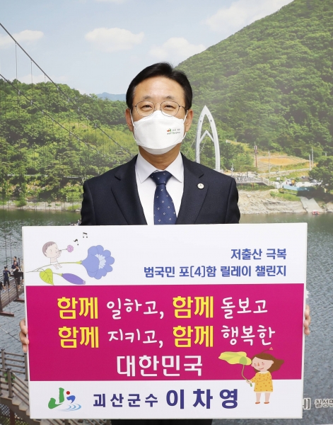 [충청뉴스큐] 이차영 괴산군수는 29일 ‘저출산 극복 범국민 포함 릴레이 챌린지’에 동참했다.