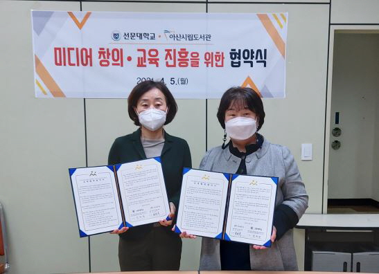 [충청뉴스큐] 아산시립도서관이 5일 선문대학교 미디어커뮤니케이션 학부와 미디어 창의·교육 진흥 지원을 위한 업무협약을 체결했다.