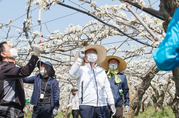 지난해에 이어 올해에도 배 화접에 참여한 오세현 시장은 “아산배는 당도도 식감도 우수해 세계시장에서 인정 받고 있는 아산의 자랑”이며 “일손이 부족한 시기에 조금이나마 힘을 보탤 수 있어 기쁘다.