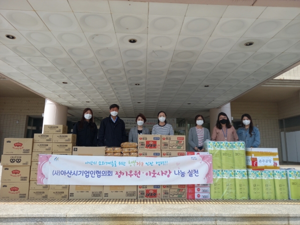 시 관계자는 "소소한 나눔을 통해 이웃사랑을 실천해 주시는 사)아산시기업인협의회에 감사드린다 지역의 다양한 기업이 나눔을 실천할 수 있도록 기부문화 확산을 위해 노력하겠다“고 말했다.
