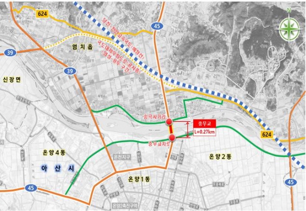 [충청뉴스큐] 아산시가 출퇴근 혼잡으로 인해 추진 중인 대표 숙원사업인 충무교 재가설 사업에 속도가 붙고 있다.