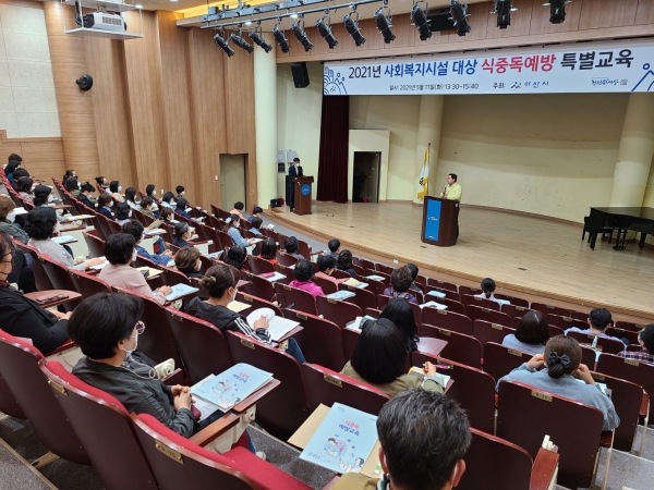 이날 코로나19 방역수칙을 철저히 준수한 가운데 취약계층이 사용하는 사회복지시설의 관리자 및 급식종사자 55명 에게 양성평등 교육, 식중독의 이해, 식중독 발생 현황, 계절별 식중독 발생 원인 및 예방법, 집단급식소 위생관리, 코로나19 예방 집단급식소 생활방역수칙 등을 교육했다.