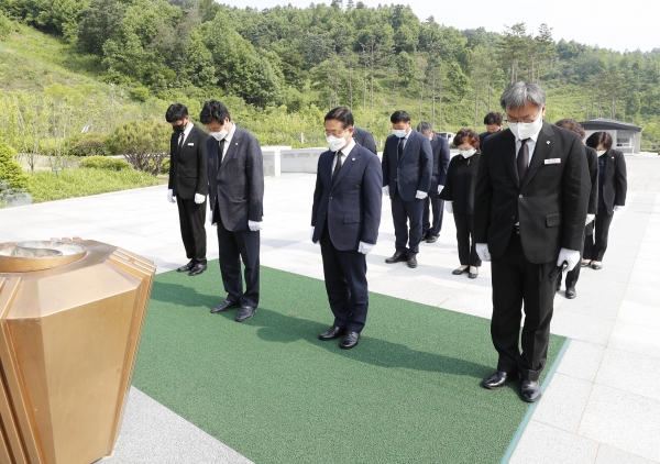 [충청뉴스큐] 이차영 괴산군수와 신동운 괴산군의회 의장을 비롯한 괴산군의회 의원, 윤남진 충북도의회 의원이 호국보훈의 달을 맞아 괴산군 문광면에 위치한 국립괴산호국원을 방문해 충혼탑을 참배했다.
