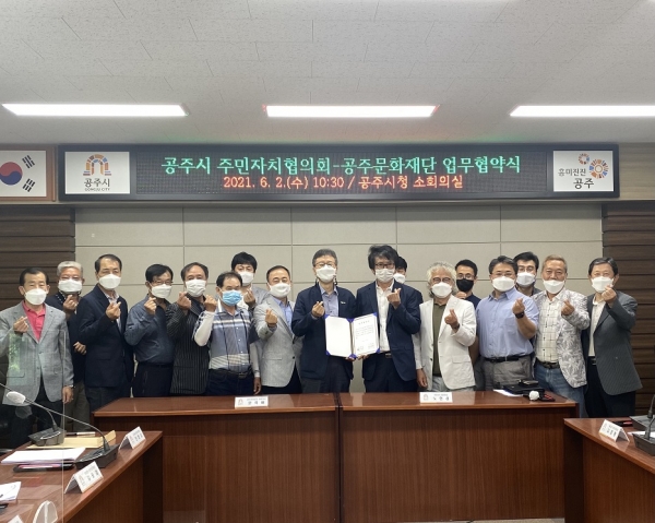 [충청뉴스큐] 공주시주민자치협의회와 공주문화재단은 상호인프라를 활용한 문화예술 활동 및 문화도시 사업을 통한 지역문화 진흥을 위해 상호 협력하기로 업무협약을 체결했다.