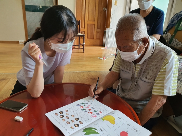 센터로 내소가 불가능한 대상자에게는 직원이 집으로 방문해 1:1 인지프로그램을 진행한다.