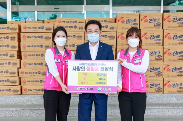 [충청뉴스큐] 계룡시는 지난 14일 명랑시대외식청년창업협동조합과 한국나눔연맹에서 취약계층을 위한 물품을 기탁해 왔다고 밝혔다.