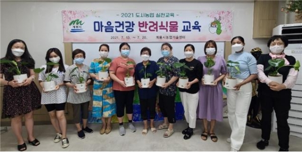 [충청뉴스큐] 계룡시 농업기술센터는 지난 7월 13일부터 20일까지 2회에 걸쳐 다문화여성 10명을 대상으로 ‘마음건강 반려식물 교육’을 실시했다고 전했다.