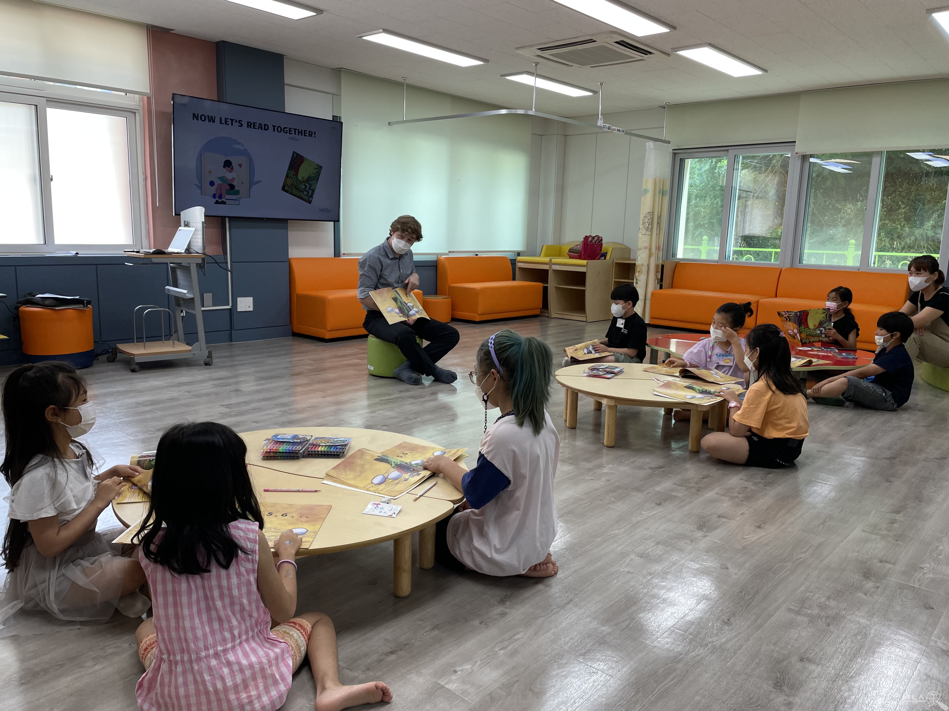 영어독서캠프는 초등 저학년과 고학년으로 구분하여 태안도서관에서 운영되며, 원어민교사와 함께 영어 동화를 읽으며 영어책 읽기에 대한 흥미를 높이는 물론 어휘력과 사고력 향상을 위한 다양한 독서 활동을 함께 진행한다.