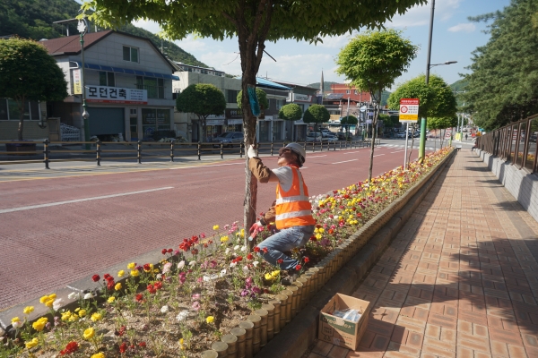 [충청뉴스큐] 녹색쉼표 단양군이 전례 없는 폭염으로 회색 열섬에 갇혀 신음하는 단양읍 도심 가로수 보호를 위해 팔을 걷어 부쳤다.