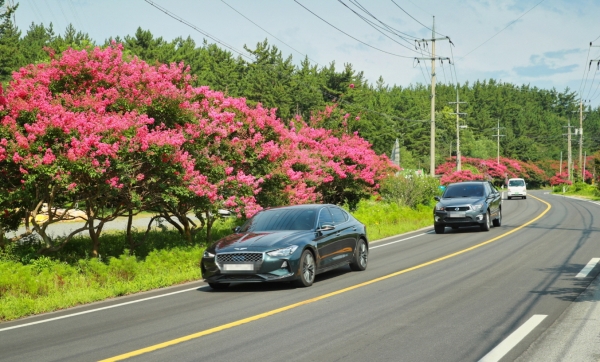 [충청뉴스큐] 태안군 태안읍에서 이원면을 잇는 지방도603호선에 아름다운 백일홍이 피어 화려한 자태를 뽐내고 있다.