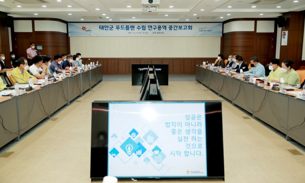 이와 관련, 군은 4일 군청 중회의실에서 가세로 군수와 푸드플랜 추진위원, 실무위원, 용역사 관계자 등 40여명이 참석한 가운데 ‘태안군 푸드플랜 수립 연구용역 중간보고회’를 갖고 그동안의 연구 성과를 검토했다.