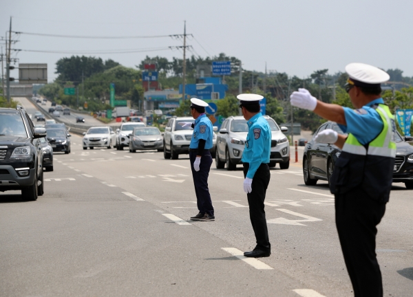 특히 코로나19 사태의 장기화로 외국 여행이 줄고 국내여행 관광객이 늘어 최근 태안군 안면대교 남단부터 정체가 잇따라 발생됨에 따라 폭염 속에서도 교통정리에 구슬땀을 흘리고 있다.