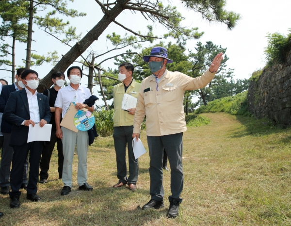 이날 가세로 군수는 안흥진성 동문 좌우로 ‘프리존’을 설정해 탐방객이 자유롭게 관람할 수 있도록 하고 우선적으로 동문 일원 철책을 전면 철거하는 방안을 제시했다.
